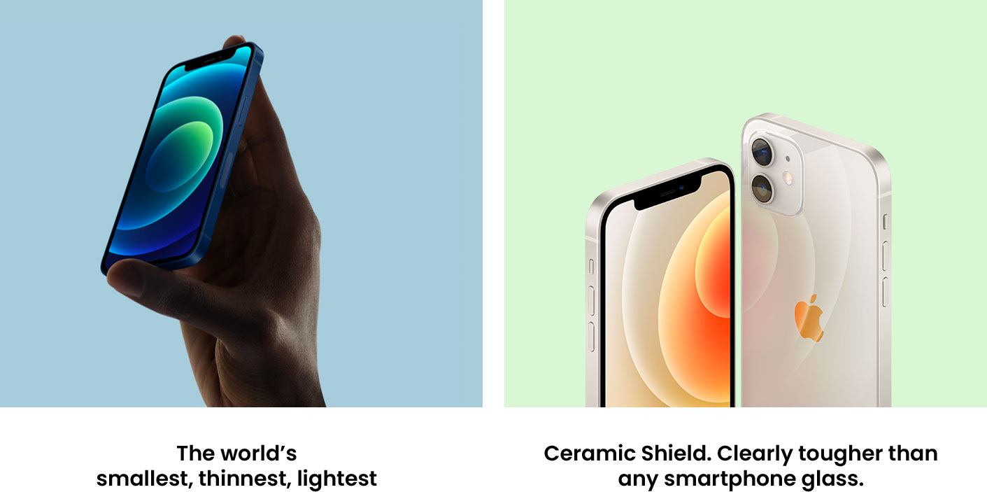 An edge-to-edge OLED display. Ceramic Shield with four times better drop performance. And Night mode on every camera. iPhone 12 has it all — in two perfect sizes.